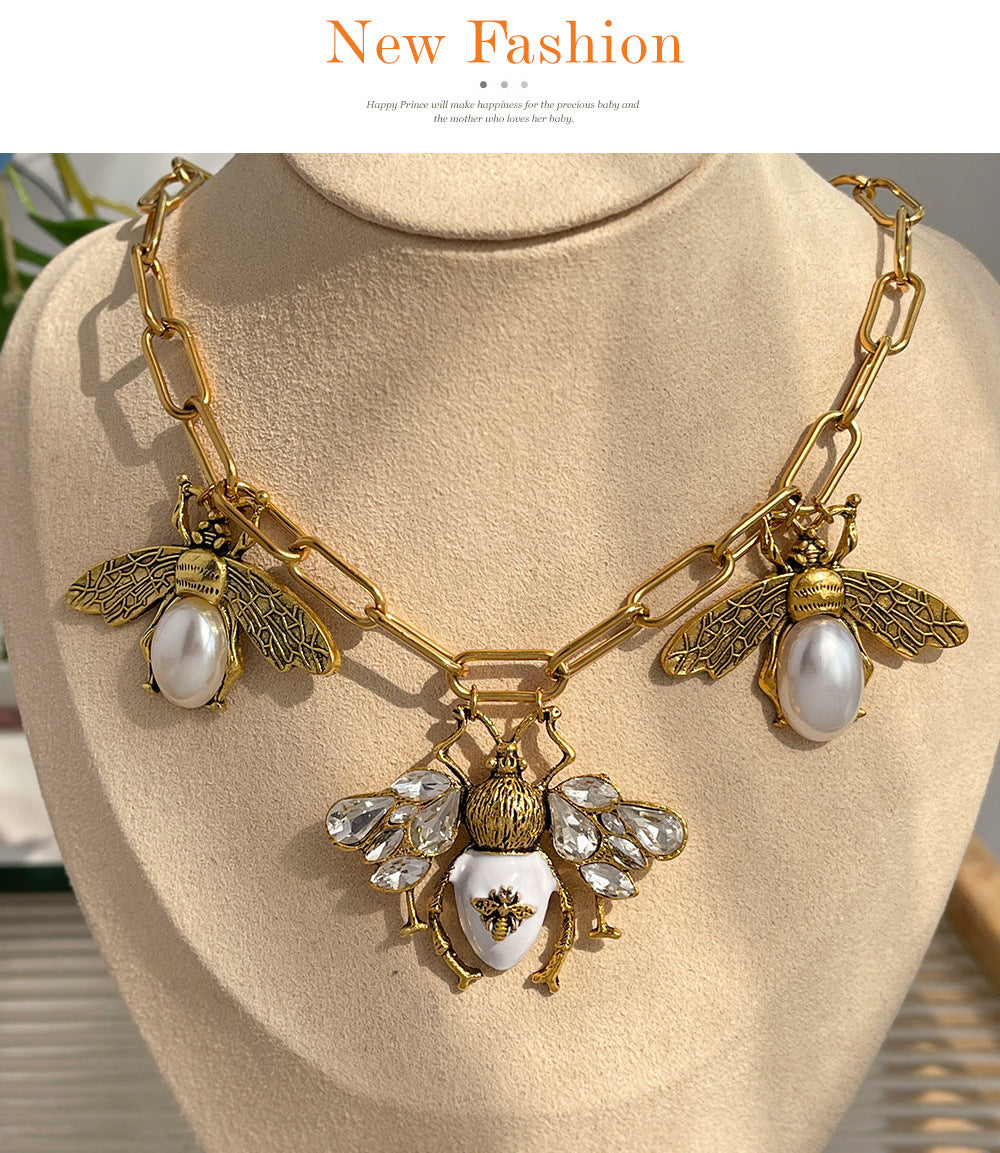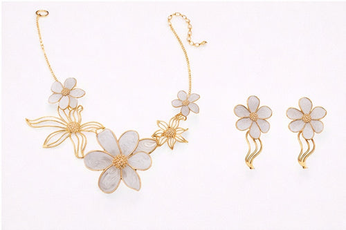 Elegant Floral Pearl & Diamond-Accented Jewelry Set – Luxe Alloy Necklace and Earrings for Modern Women